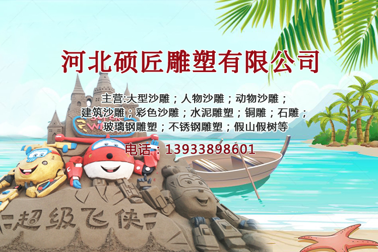 河北碩匠雕塑有限公司坐落于雕刻之鄉-河北曲陽,主要經營制作大型沙雕;人物沙雕;動物沙雕;建筑沙雕;彩色沙雕;水泥雕塑.銅雕、石雕、玻璃鋼雕塑、不銹鋼雕塑、假山假樹等。在長期的雕塑藝術設計服務過程中,以的企業核心競爭力立足市場,服務客戶時堅持以原創設計為本,無論是設計能力、制作工藝、生產水平都達到了水平。